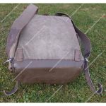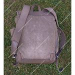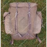 The field pack is a medium-sized rucksack closed by a large, flat, unshaped lid secured with two straps and buckles that run down the front of the pack. These straps are sewn with horizontal loops further down, allowing additional equipment to be attached. On the outer surface of the lid are two sets of D-rings for securing items with straps, while the underside is lined with a rubberized, laminated fabric to provide waterproofing.