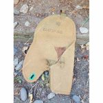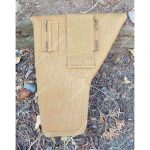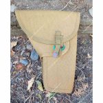 A simple webbing cover was introduced over the opening to shield the trigger guard from contact with the exposed edges of the internal metal magazine case. This refinement reduced wear on the pistol while maintaining the holster’s ability to carry both cleaning equipment and a spare magazine.