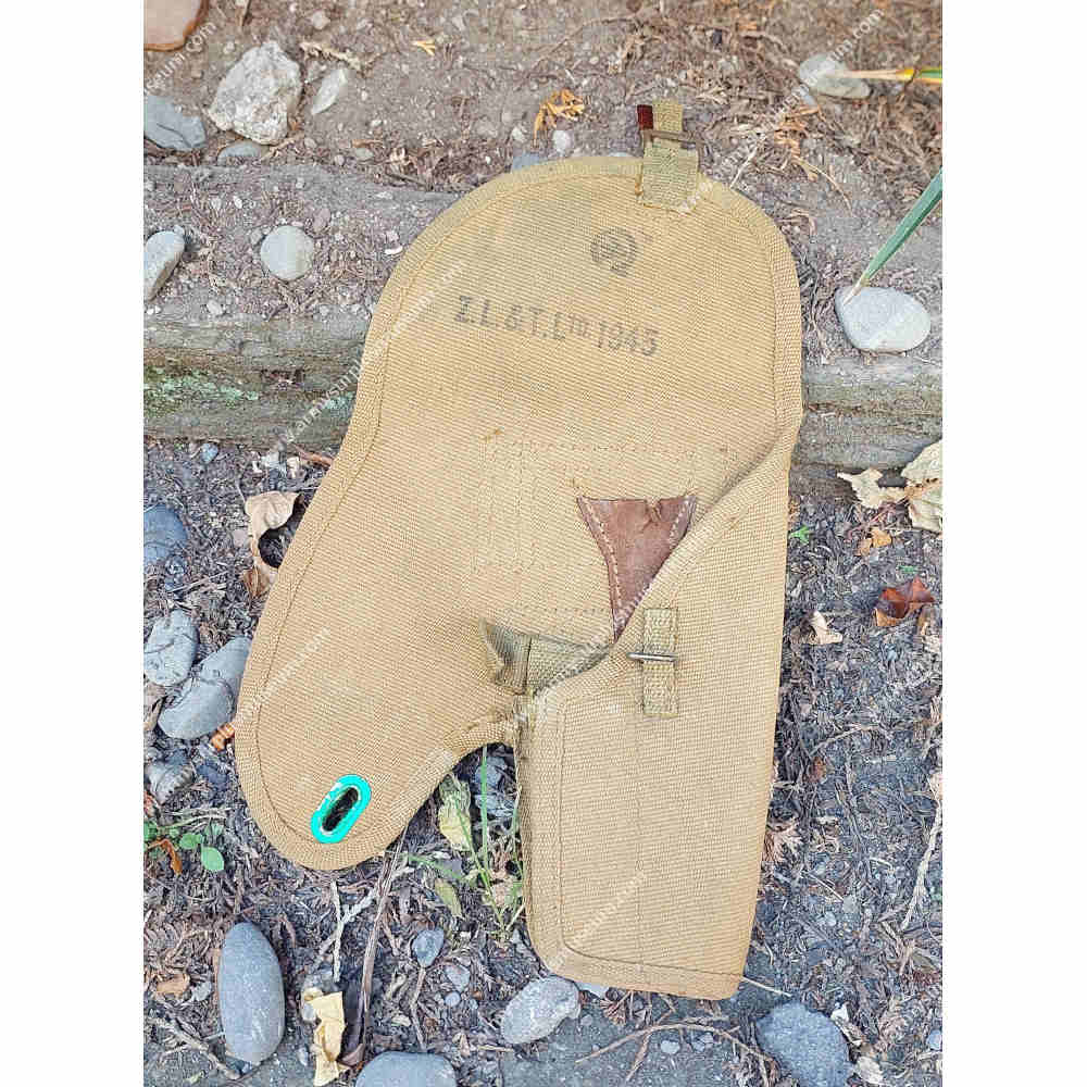 The resulting No.2, Mk II holster featured a looser, more practical fit, allowing the pistol to be inserted and withdrawn without excessive force. While retaining key elements of the earlier design—such as the internal cleaning rod sleeve and spare magazine container—the layout was improved to better protect the pistol in service.