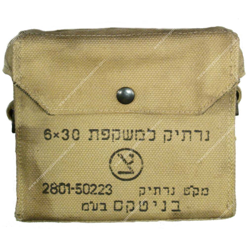 The Israeli binocular case appears to use the British Pattern 1937 Web Equipment binocular case as a design base and was intended for use with the Israeli Defence Forces Tziyud Ḥagur (Load-Bearing Equipment) web system. This system combined design elements derived from British Pattern 1937 and U.S. M-1936 web equipment, alongside locally developed Israeli solutions, and was in use during the 1960s and 1970s.